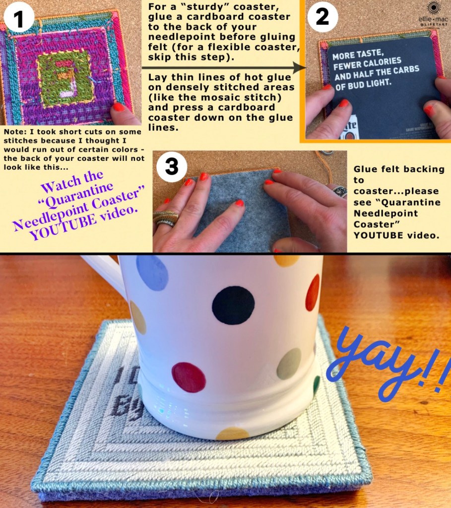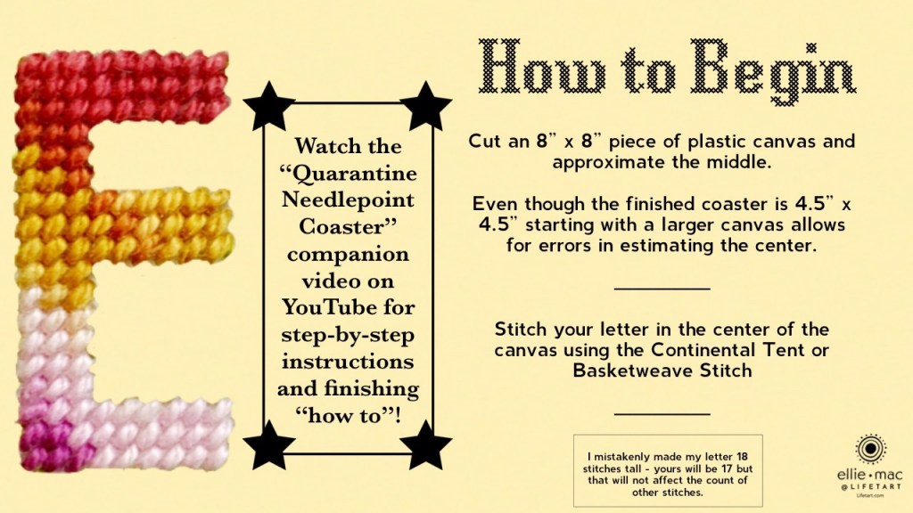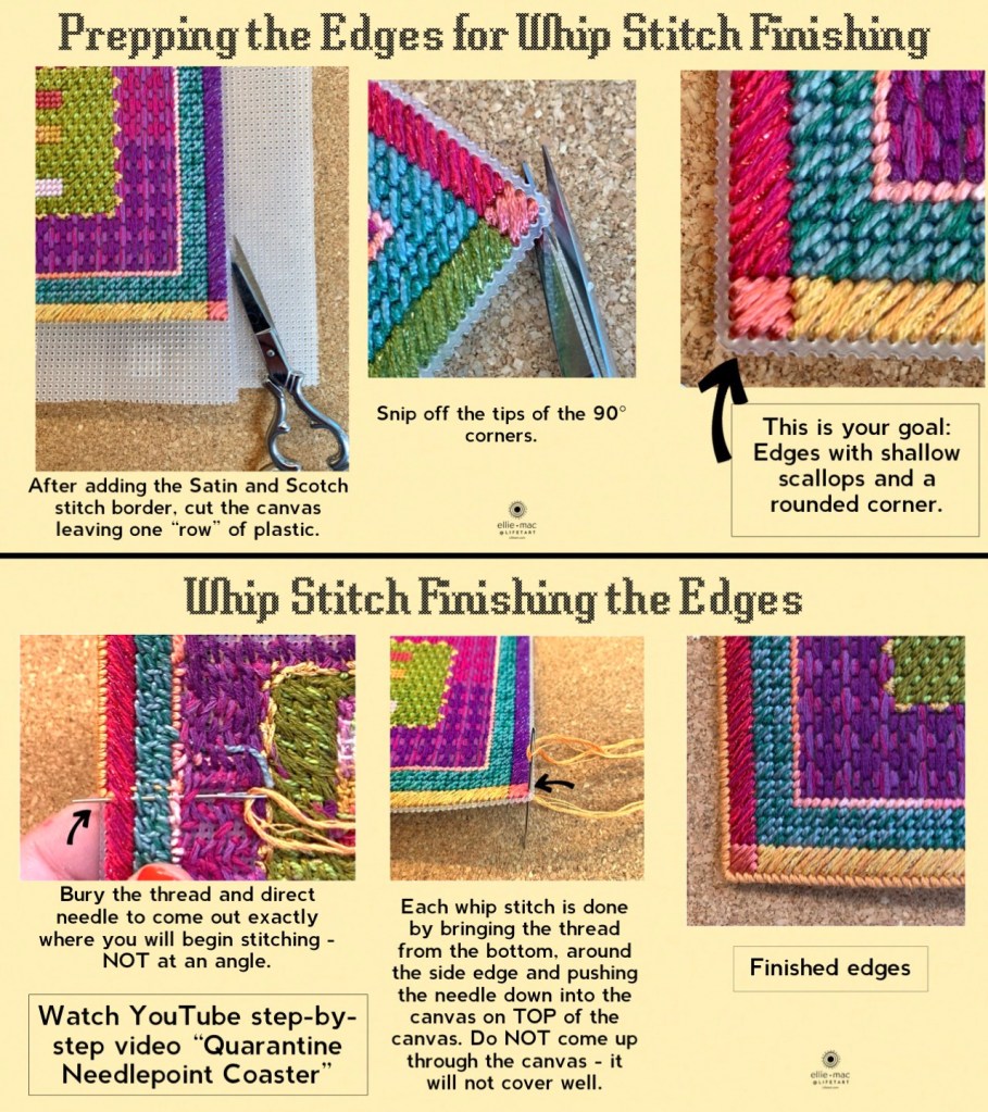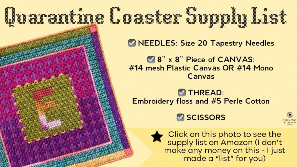 The photos below are the companion “textbook” for the video on YouTube. Be sure to watch the video so that these photos will make sense to you! I have included a “Table of Contents” – the video is 1hr 45 min so I thought it really needed a table of contents! This video covers every stitch step-by-step with all sorts of info about thread, stitches, etc. If you are a beginner, this may be of interest to you…it is intended as a quick sampler to learn all sorts of stitches and end up with a sweet little self finishing coaster. The Stitch Charts below are listed in the order they are stitched on the coaster and the order in which they appear in the video. The center colored bar that runs through the middle of the charts refers to the color of that stitch on the Master Chart.
