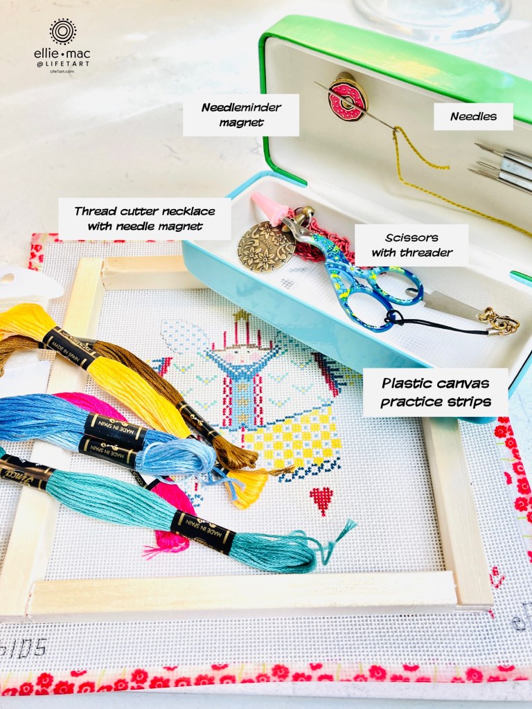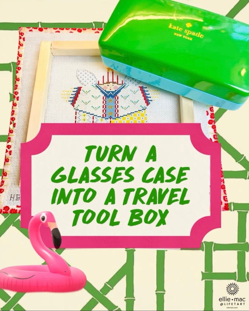 You know those GIGANTIC glasses cases that come with glasses – the cases that are the size of a small evening clutch? Well, those thingsare metal – and magnets stick to them..and they make fantastic travel tool cases for traveling with needlework, beadwork, etc! All you need is a glasses case/box, some magnets and of course your tools and supplies!