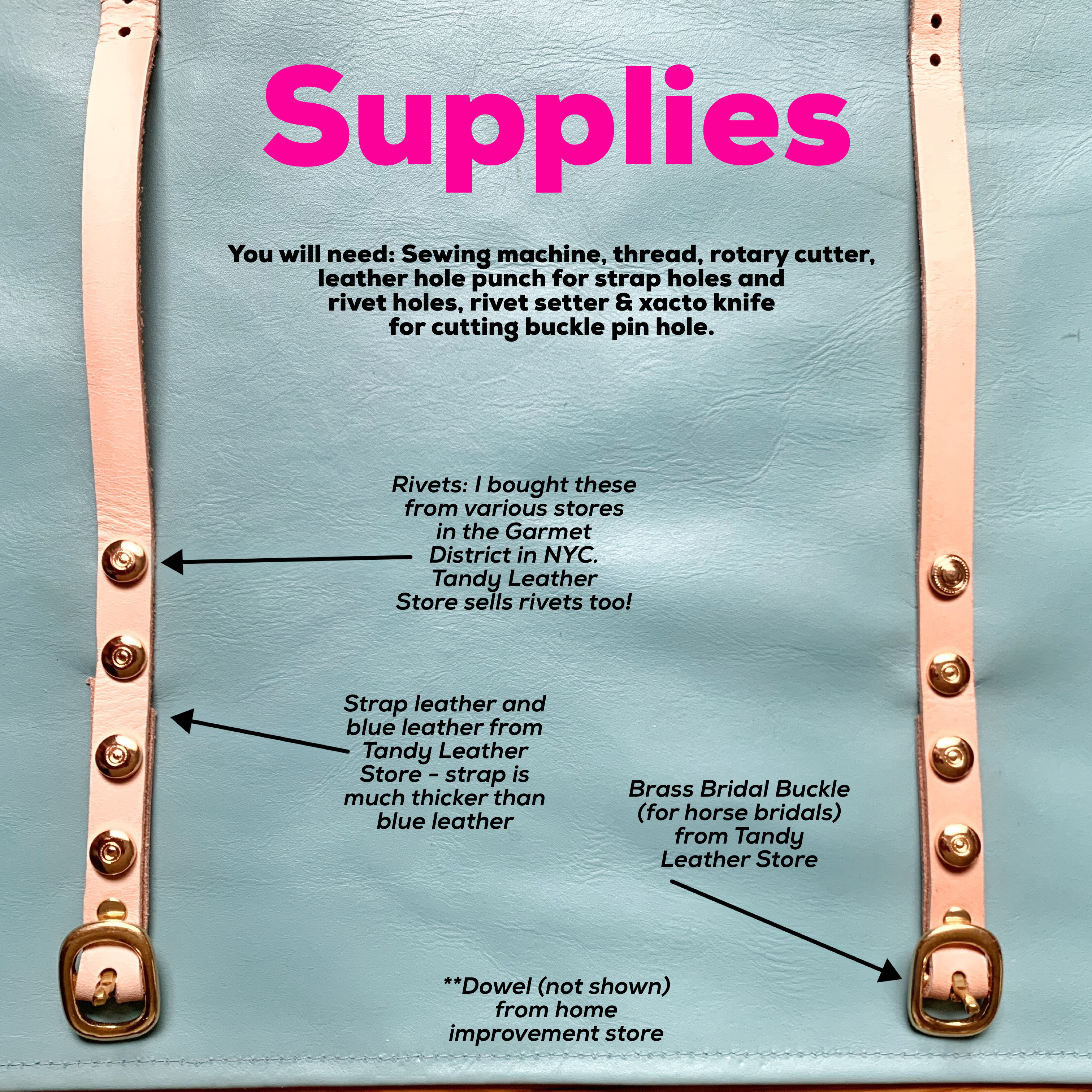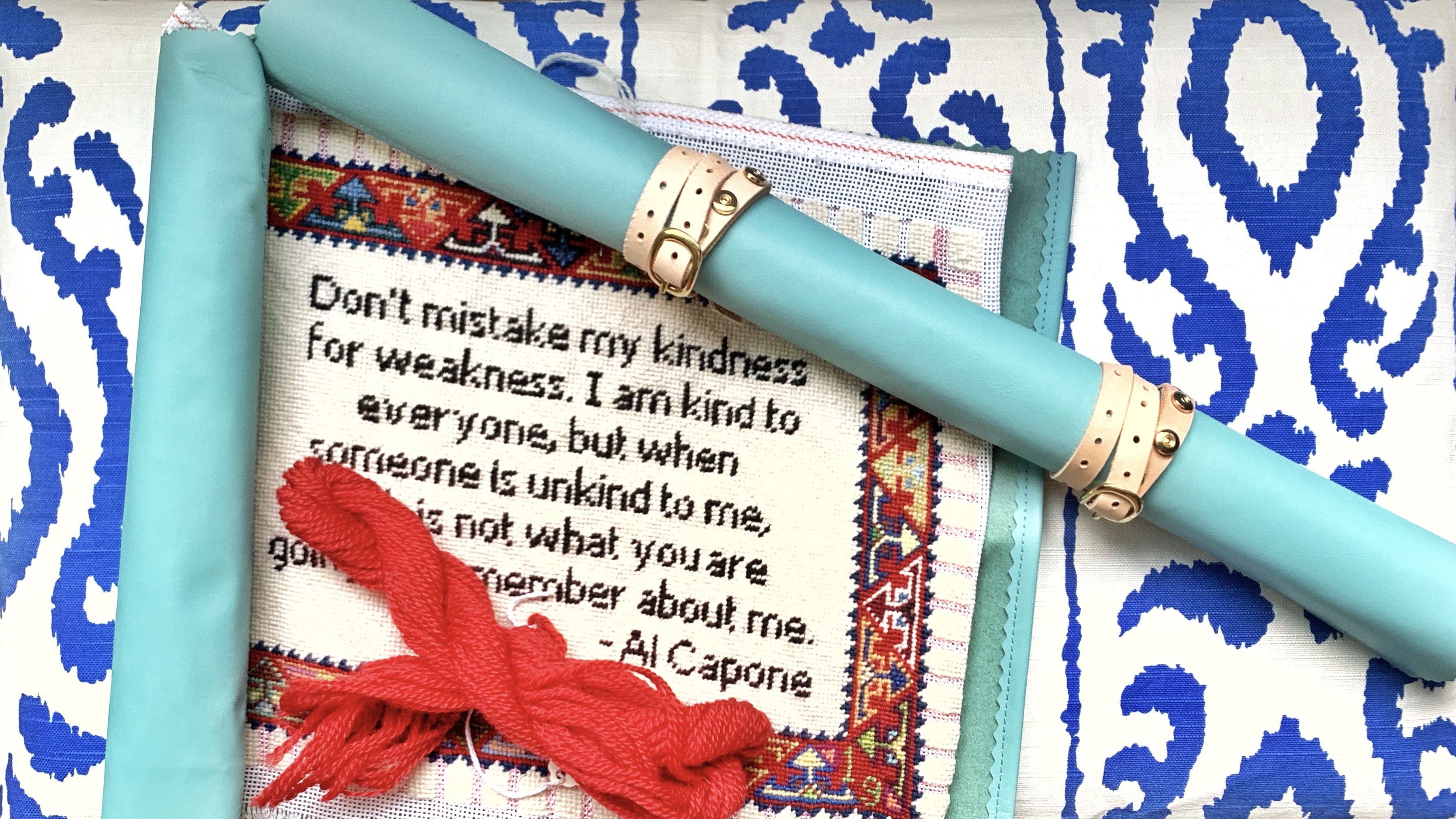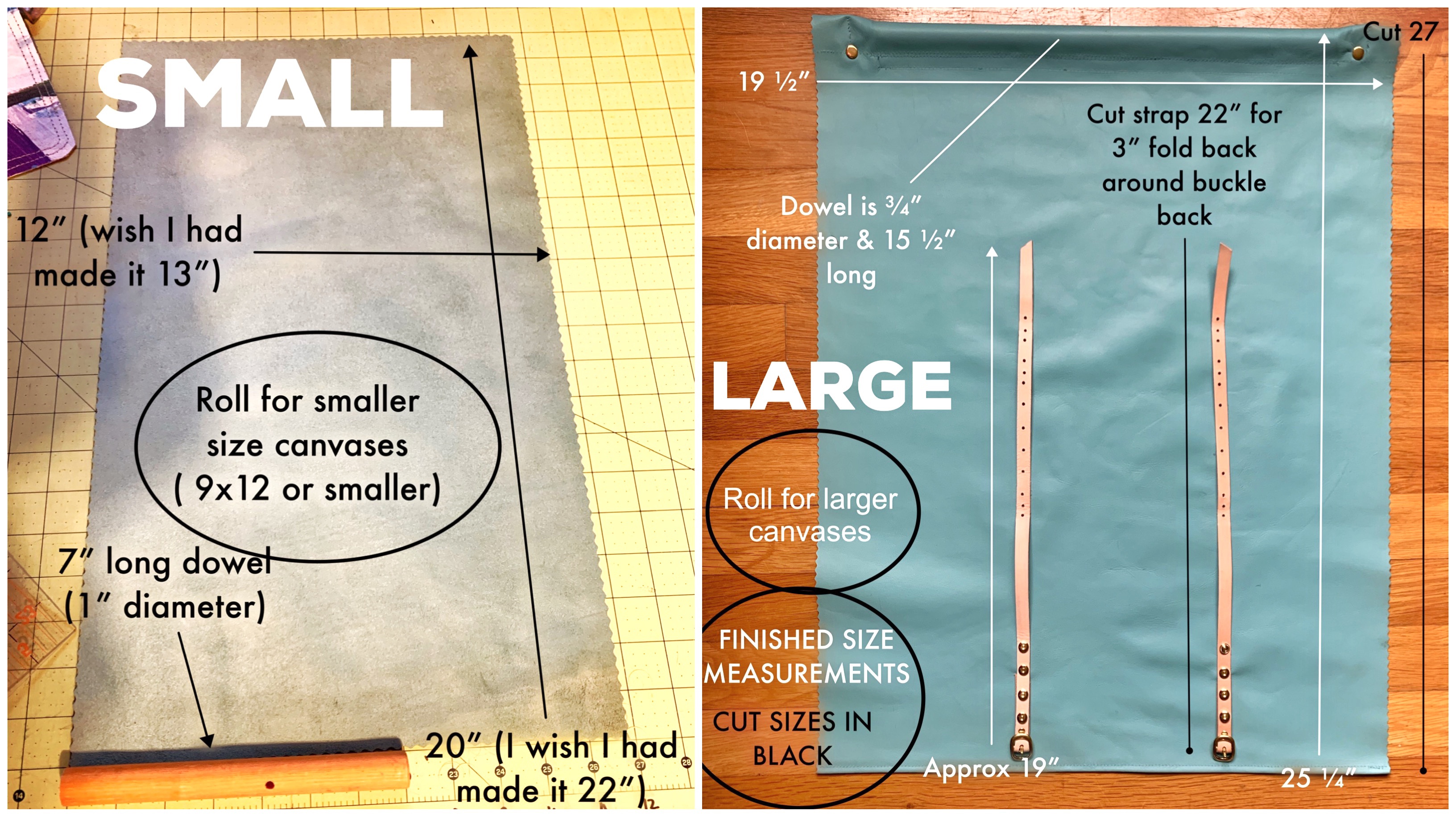 On Instagram in January, Pipandrooneedleworks posted a Needlepoint travel roll that her husband had made for her and I thought “Hey! I want one of those!” …but I can’t stitch leather like that – so I came up with this! If you don’t have a sewing machine I will bet this will still work by just riveting straps onto a thicker piece of leather – as long as it is still pliable enough to roll up!
