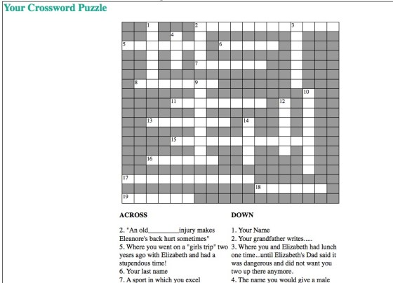 Crossword I designed for the child of a friend – kids LOVE this….because it is all about them!